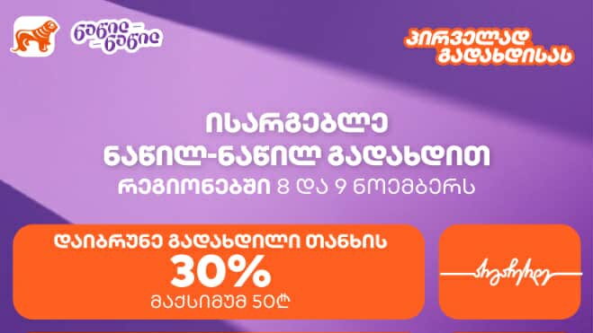 საქართველოს ბანკი მომხმარებლების წახალისებას განაგრძობს. ამჯერად, ბანკმა რეგიონებში მცხოვრებ მომხმარებლებს ახალი შეთავაზება მოუმზადა, რაც მათ პარტნიორ ობიექტებში შოპინგისას დახარჯული თანხის 30%-ის დაბრუნების შესაძლებლობას აძლევს. მხოლოდ 8 და 9 ნოემბერს, ის მომხმარებლები, რომლებიც პირველად ისარგე...