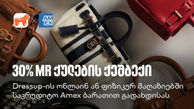 • მიიღეთ 30% MR ქულების ქეშბექი Dressup-ში საქართველოს ბანკის Amex ბარათით გადახდისას
